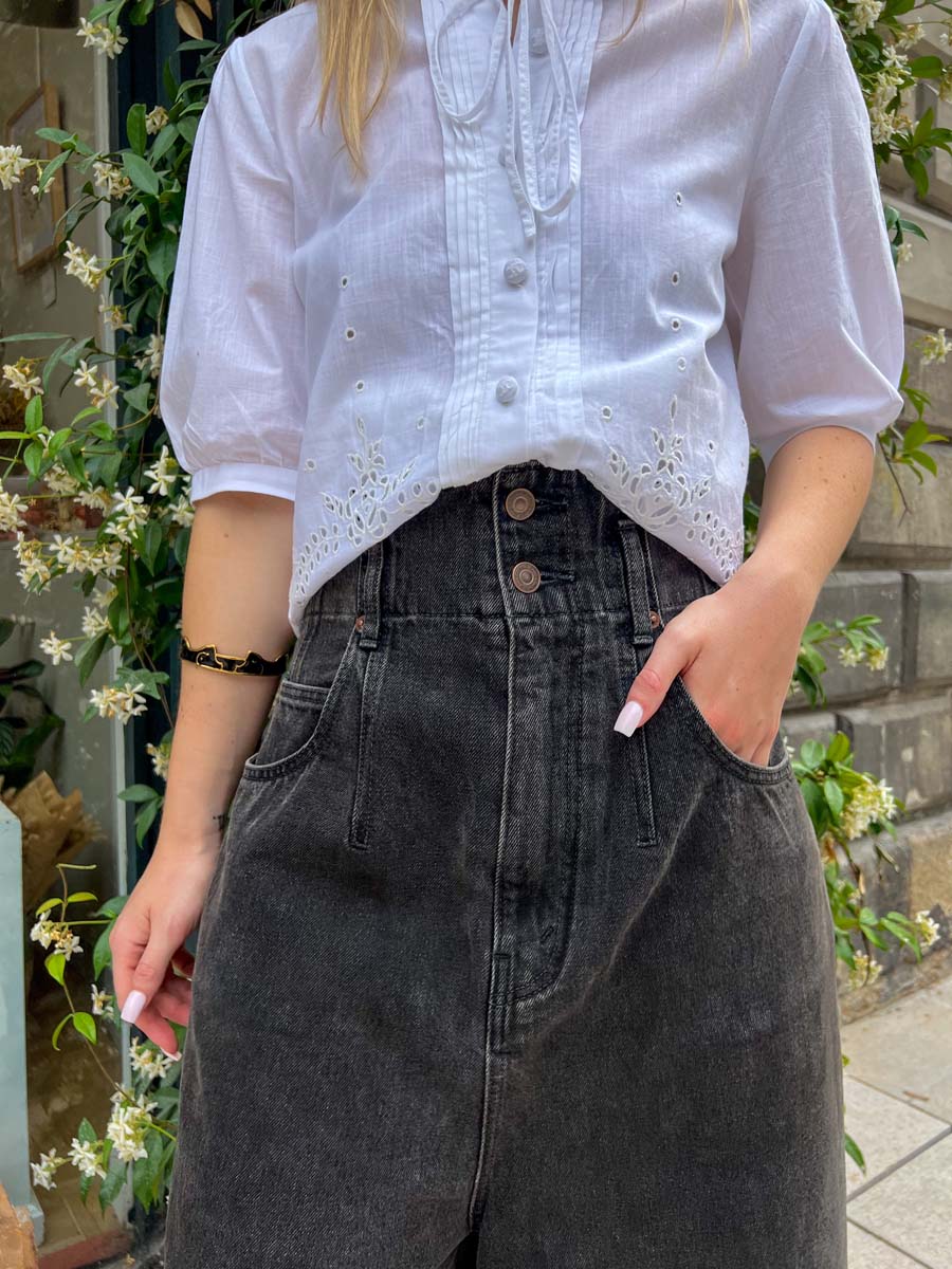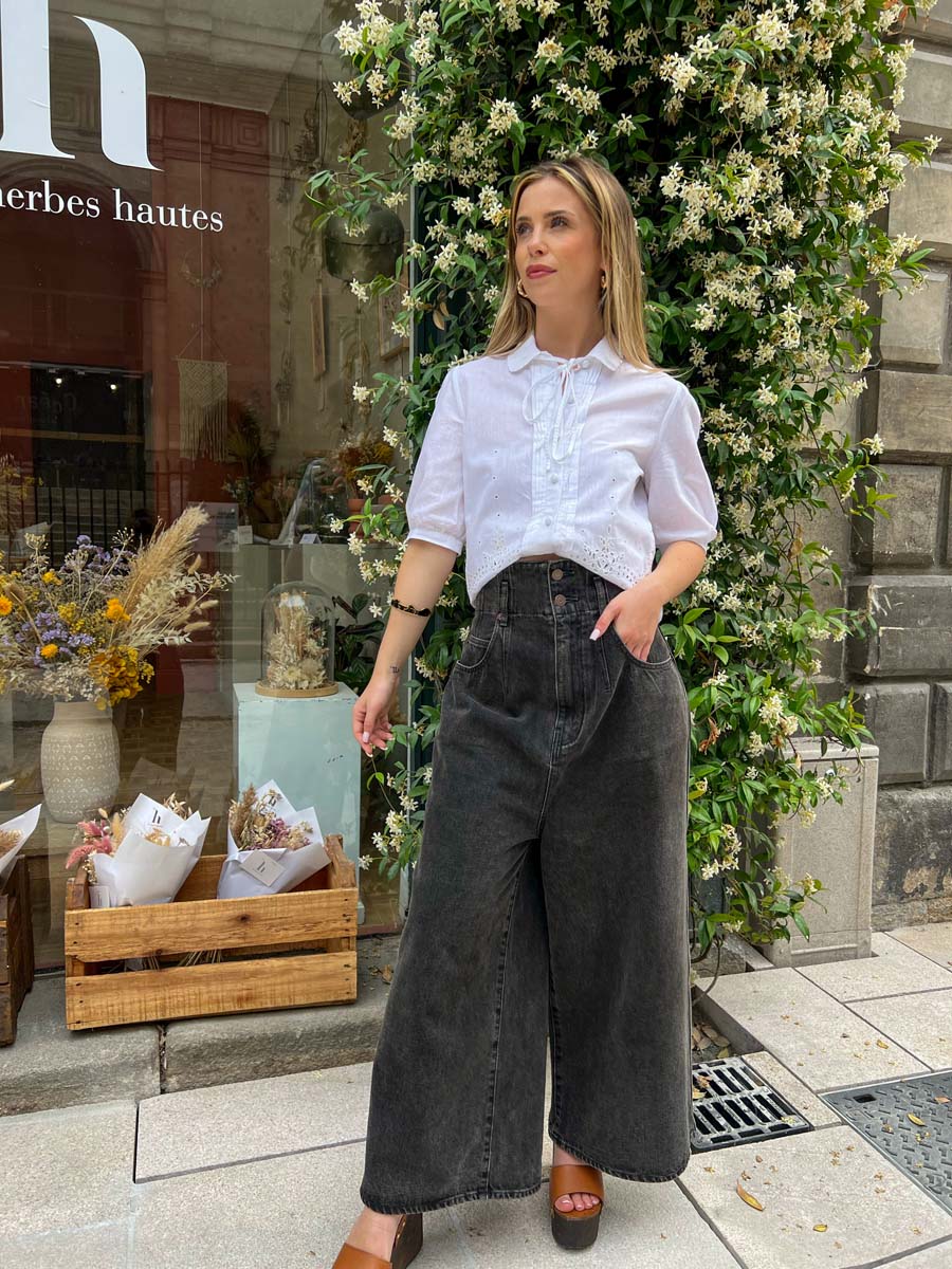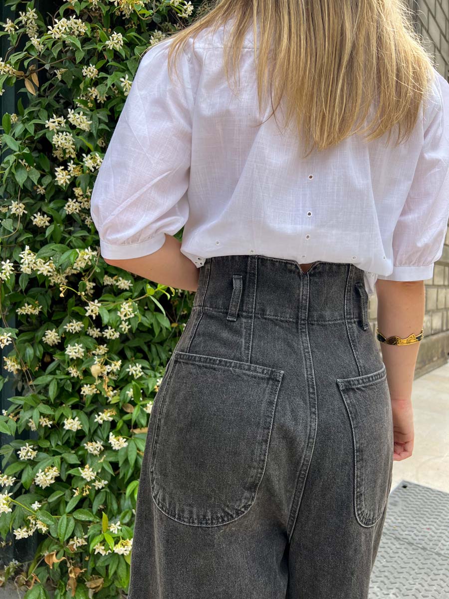 Polyvalent et stylé, ce jean Jumbo taille haute en denim délavé au charbon peut être associé à de nombreuses tenues. Il se marie aussi bien avec des hauts décontractés pour un look décontracté chic, que avec des blouses élégantes pour une tenue plus sophistiquée. En somme, ce jean est un choix polyvalent qui apportera une touche de style indéniable à votre garde-robe.